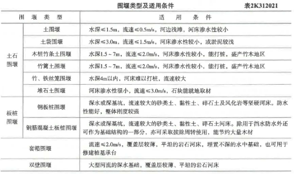 【考点来源】2K312021 各类围堰施工要求。