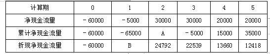 ①静态回收期;②A和B的数值;③动态回收期;④净现值。