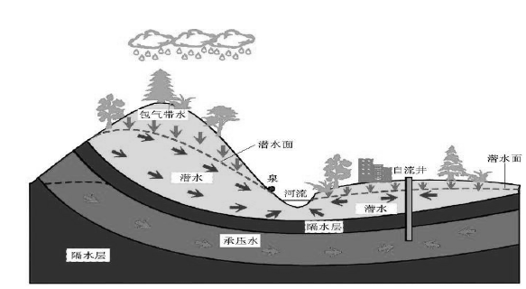 潜水是埋藏在地表以下第一层较稳定的隔水层以上具有自由水面的重力水,其自由表面承受大气压力,受气候条件影响、季节性变化明显。