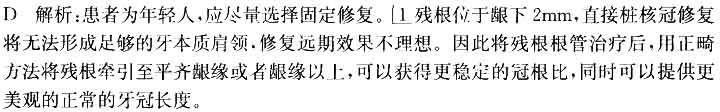 • D.残根根管治疗后,将牙根牵引至合适位置后再行桩核冠修复