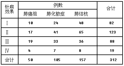 三组病人肺切除术的针麻效果如表所示:三组病人肺切除术的针麻效果的比较