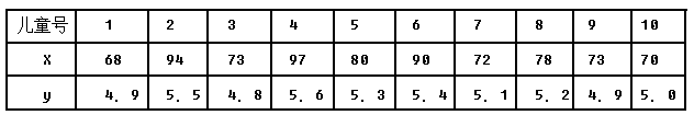 下表为一项关于儿童健康和发展的研究中10名学龄儿童的身高Y(英尺)和体重X(磅)资料。该资料宜绘制