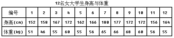 某地12名女大学生身高与体重数据如表