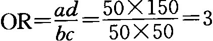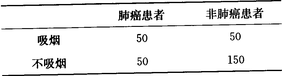 选择100例肺癌患者和200例对照进行吸烟与肺癌关系的病例对照研究,调查发现100例患者中有50人吸烟,200例对照中也有50人吸烟。估计肺癌与吸烟关系的OR值是