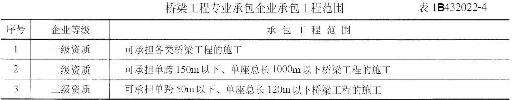 桥梁工程专业承包企业承包工程范围表1B432021-4一级资质可承担各类桥梁工程的施工